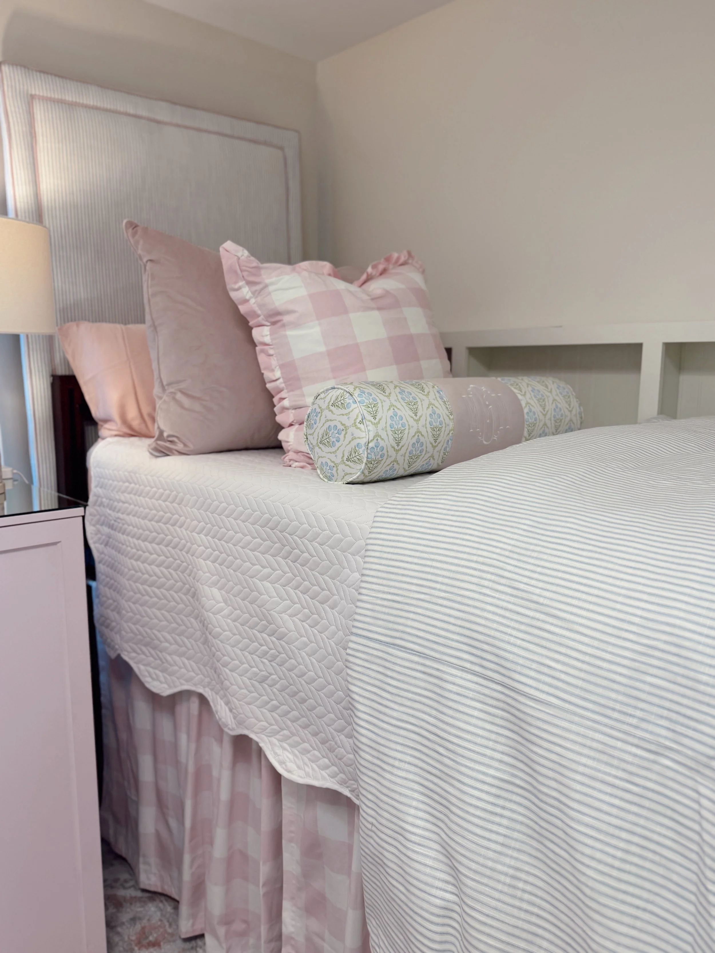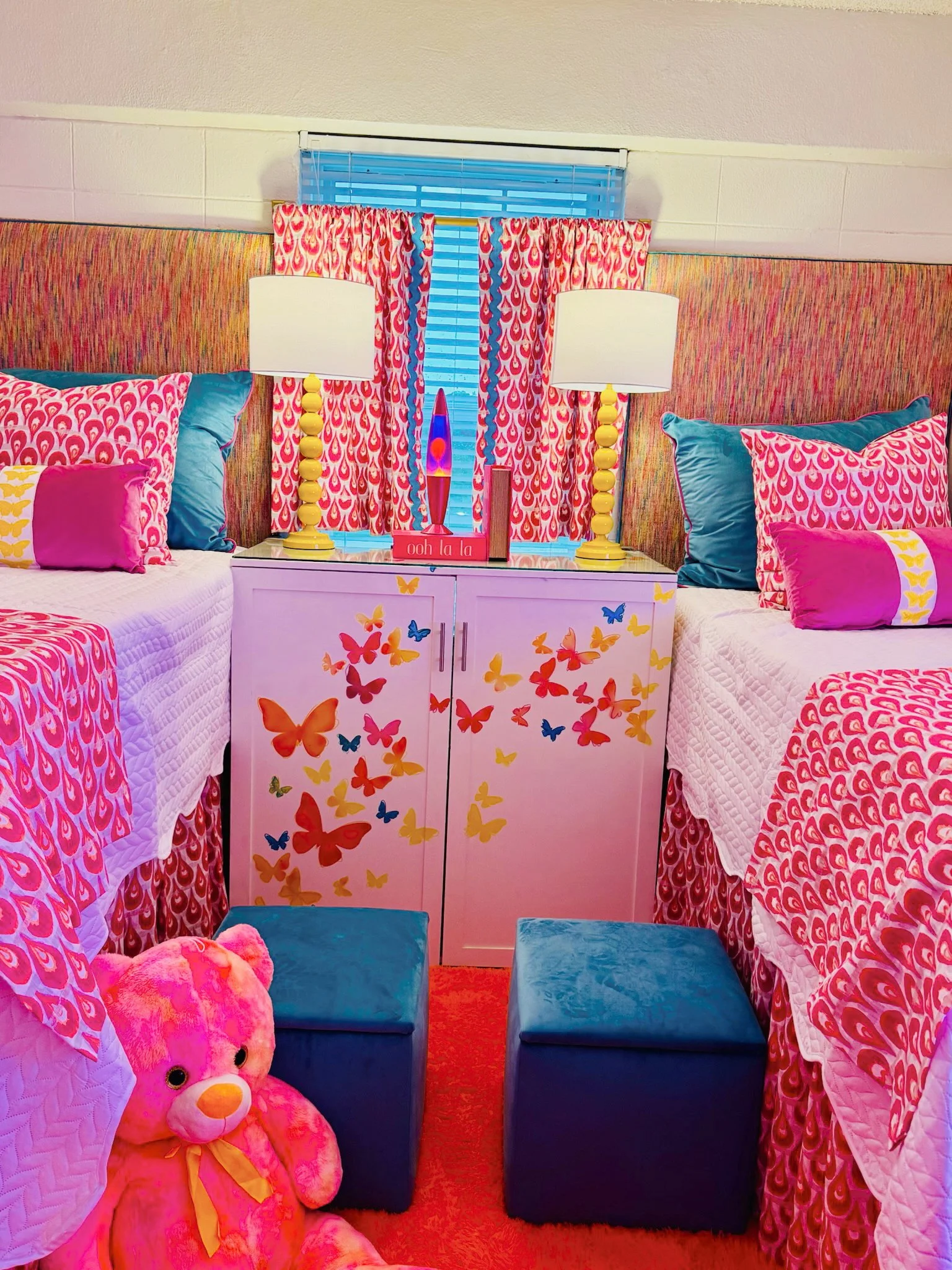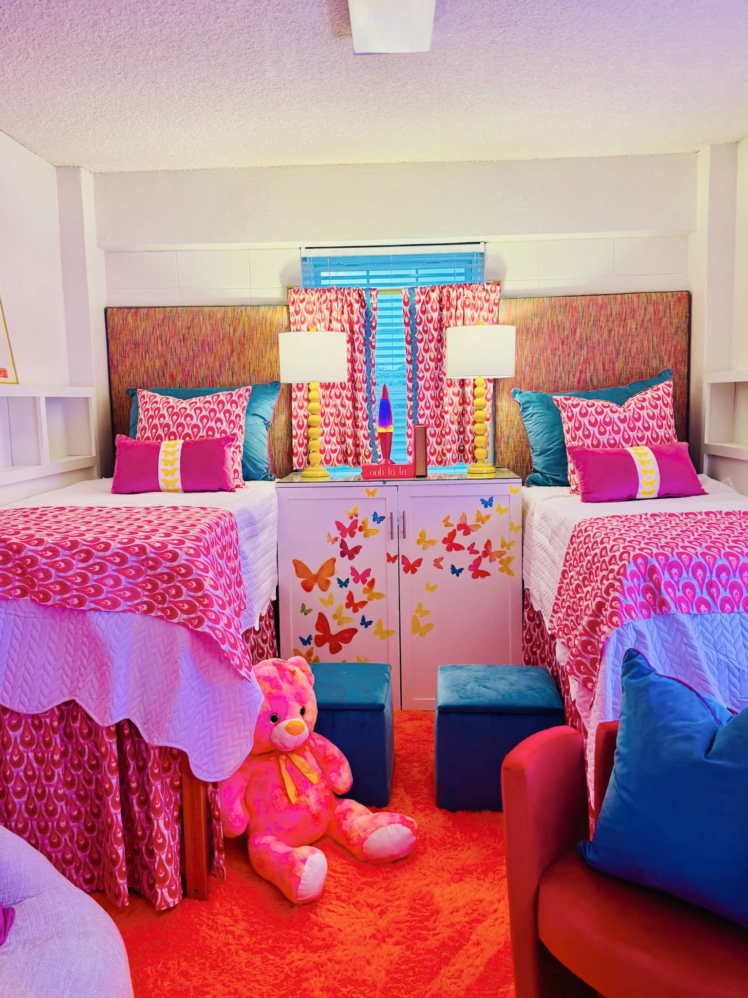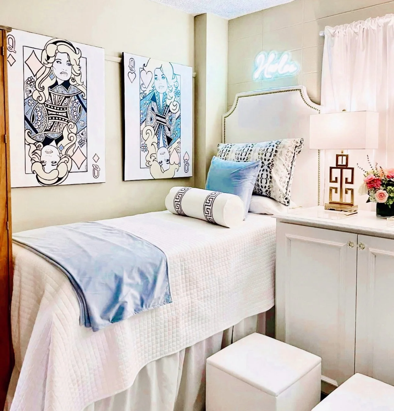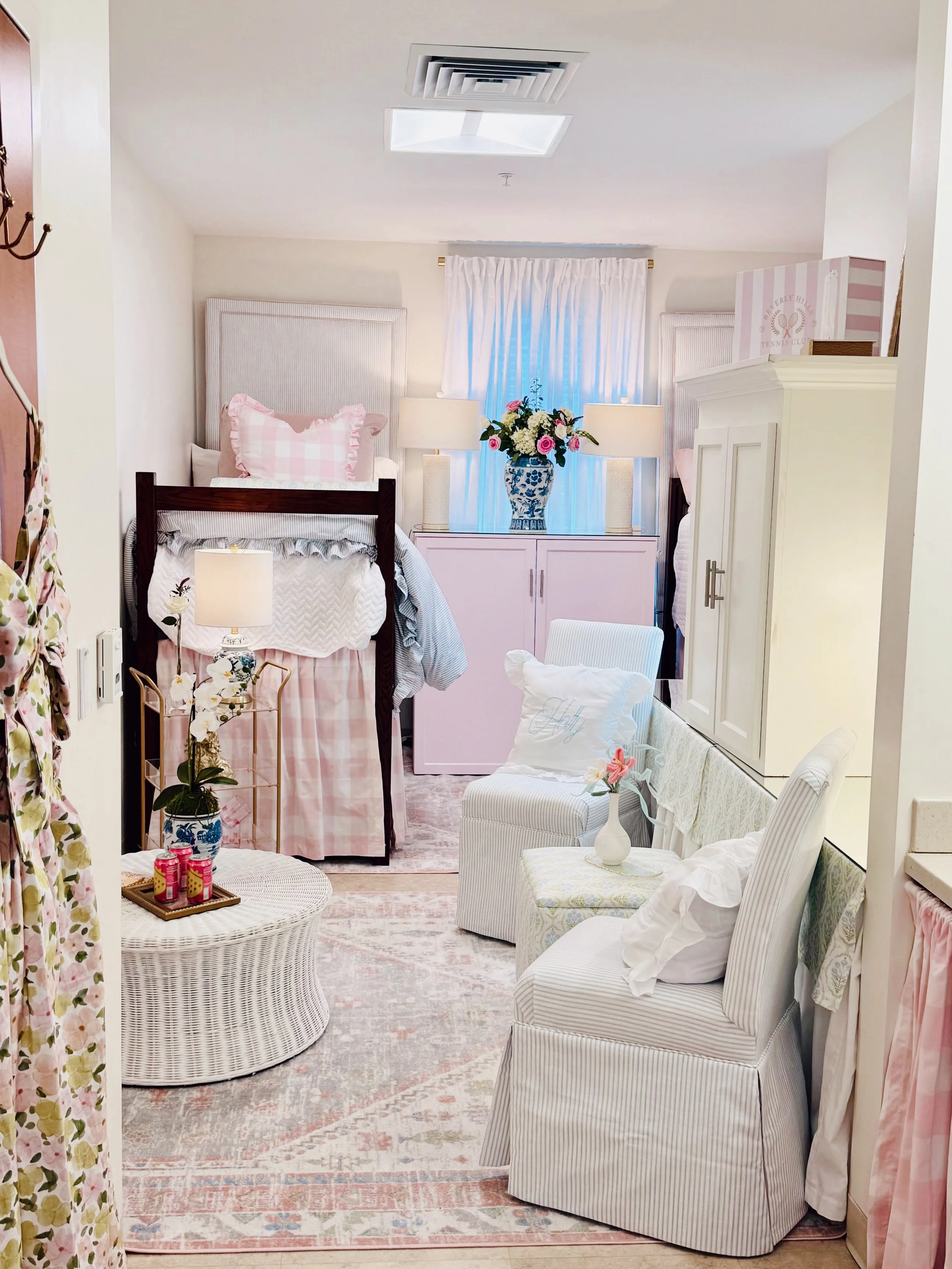 Take a peek inside my dorm design projects. Each space begins with a walk-through and vision board, tailored to the student’s unique style and story, and comes to life through a thoughtful creative process.